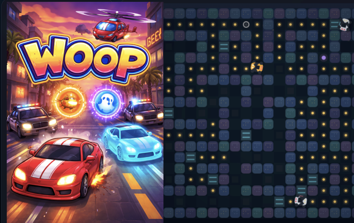 Woop is a stylish arcade driving game about collecting points, escaping pressure, and knowing when to cash out.